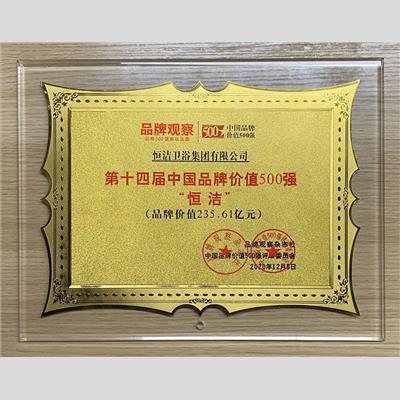 奖 项:第十四届中国品牌价值500强-恒洁
