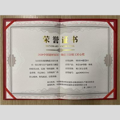 奖 项:2020中国建材家居·陶瓷卫浴 精工匠心金奖——恒洁Q9
