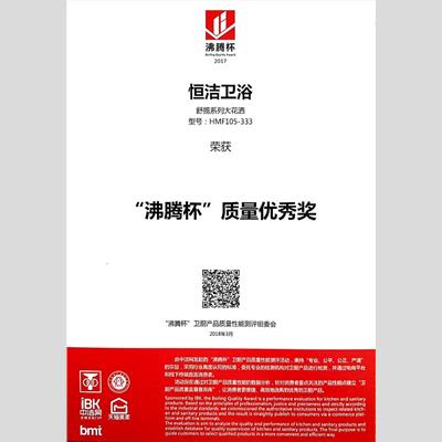 颁发单位:沸腾杯卫厨产品质量性能测评组委会