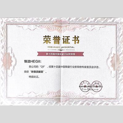 奖 项:年度环保贡献品牌(Q9)
