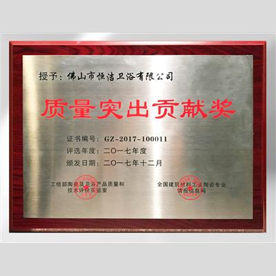 奖 项:2017年度市政府贡献奖(广东恒洁卫浴有限公司)