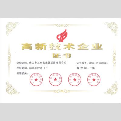 奖 项:科技创新贡献突出企业-2017年首次认定高新技术企业