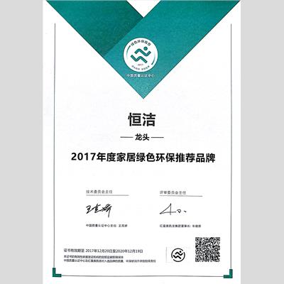 奖 项:2017年度家居绿色环保推荐品牌 -龙头