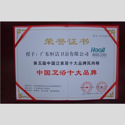 奖 项:第五届家居风尚榜 中国卫浴十大品牌