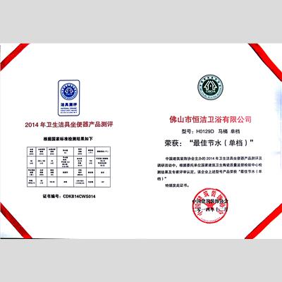 奖 项:H0129D马桶 2014年卫生洁具坐便器产品测评 最佳节水(单档)