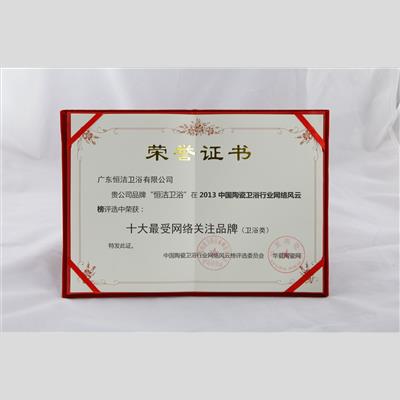 奖 项:2013年中国陶瓷卫浴行业网络风云榜 “十大最受网络关注品牌(卫浴类)”