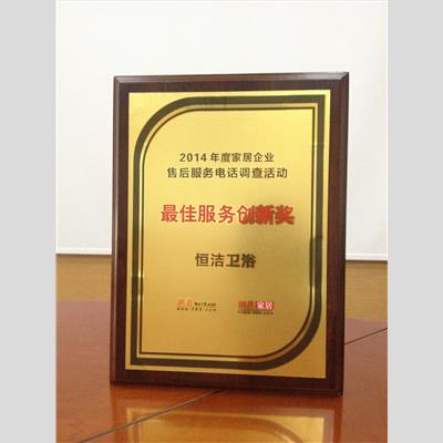 奖 项:2014年度家居企业售后服务电话调查活动 最佳服务创新奖 广东恒洁卫浴有限公司
