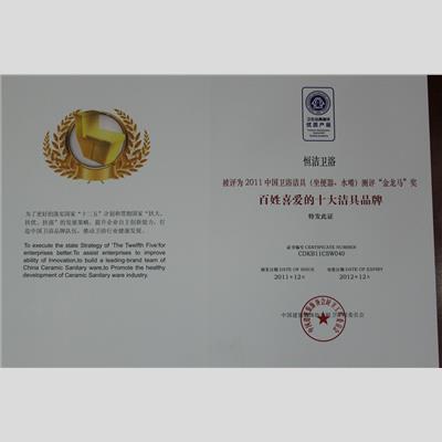 奖 项:百姓喜爱的十大洁具品牌