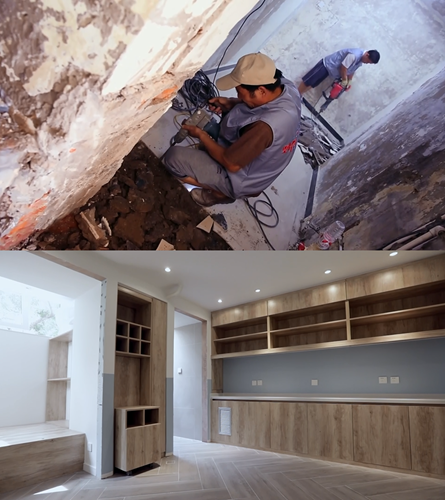 本期改造面对的问题还不仅如此,夫妻俩人在耗尽积蓄买房后,装修的预算也仅有6万元。面对这样的窘境,这一期节目的设计师Bill颜呈勋,决定凭借DIY改造能力,手工制造大部分家具及软装,不求奢侈豪华,但能给雷雷的一家人带来舒适而实用的居住环境。