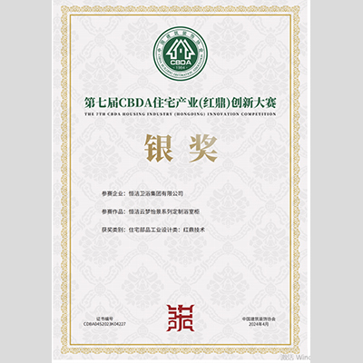 奖 项:红鼎技术TOP10-云梦怡景系列定制浴室柜 证书