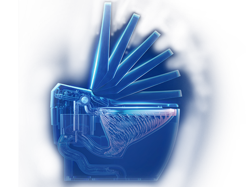 - 文氏增压(国家发明专利号:ZL 2012 1 0501604.5):利用文氏管原理和虹吸负压将存水迅速卷入冲水管道,即使在低压或停电情况下,也冲得干净。