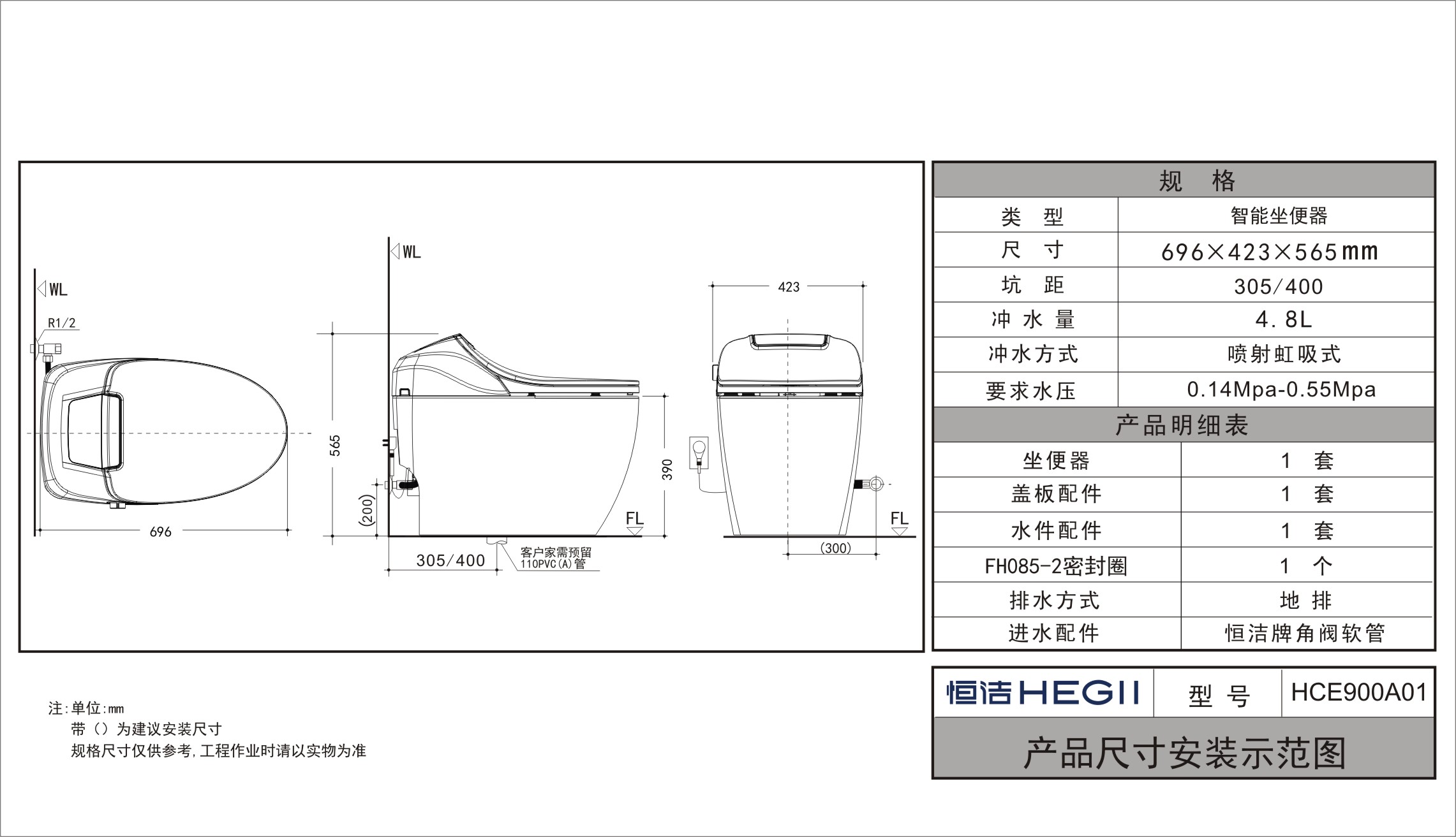 - 要求水压:0.14-0.55MPa