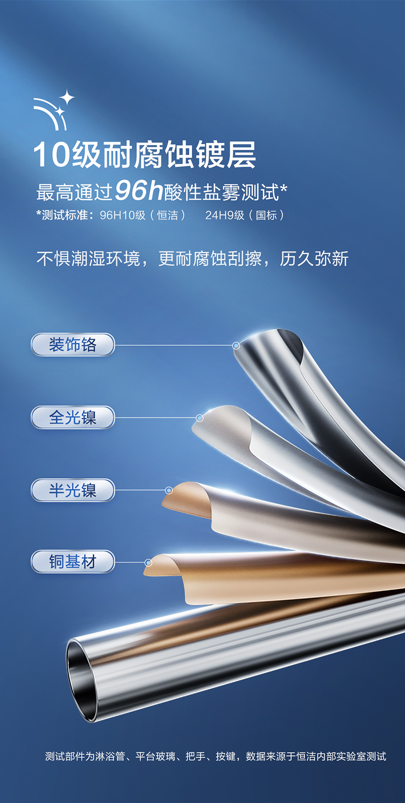 - 10级镀层技术,最高通过96h酸性盐雾测试,持续光亮,经久耐用