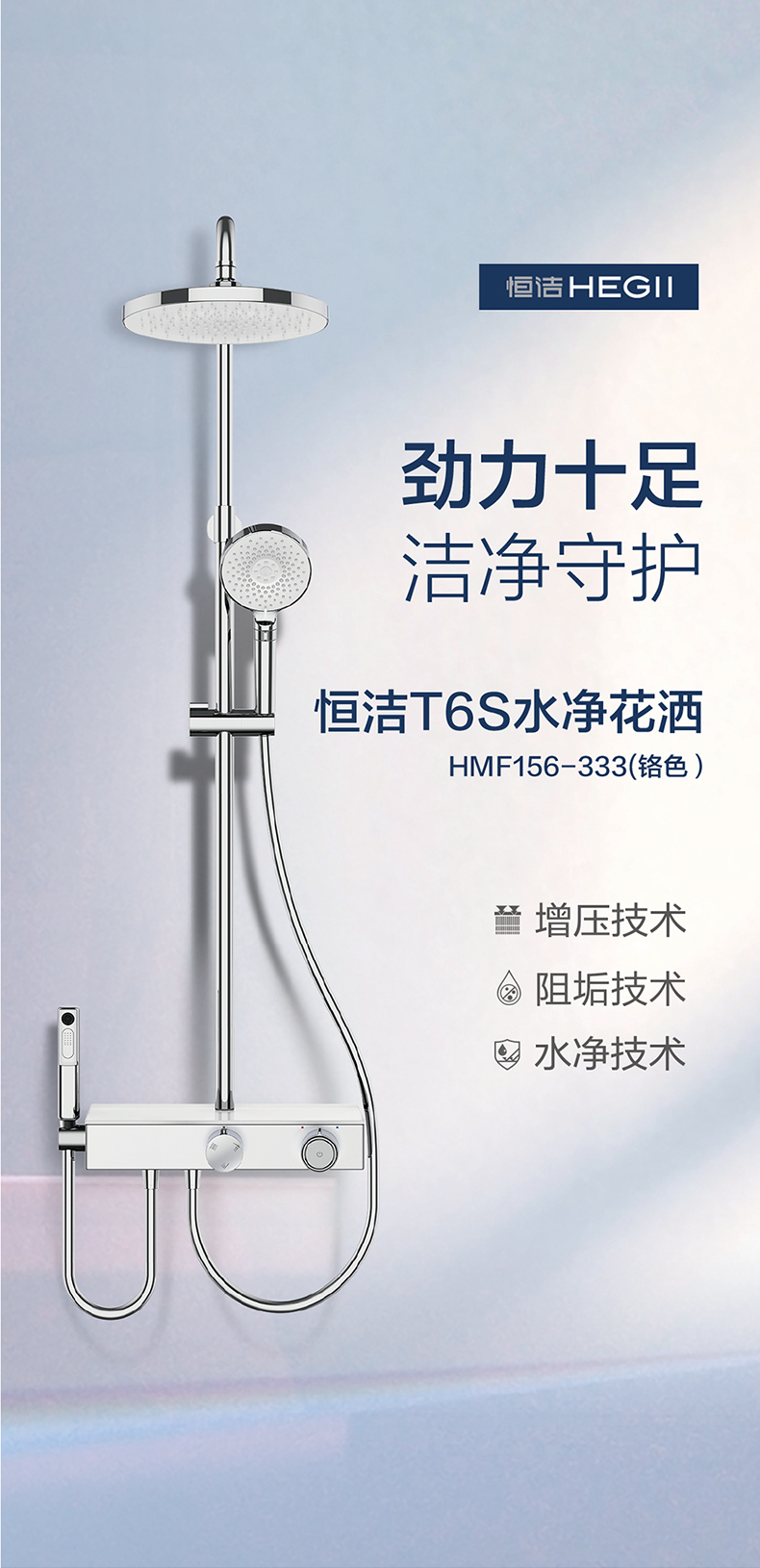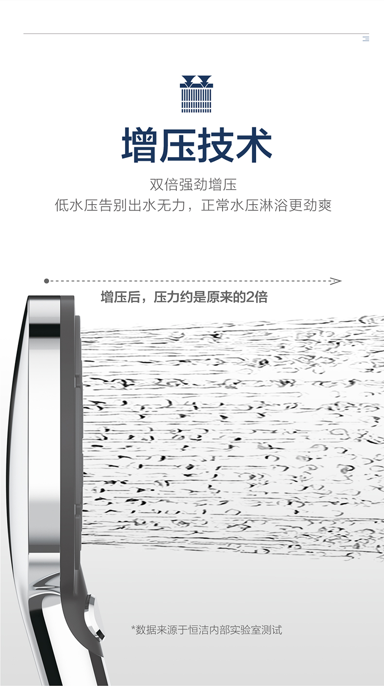 - 恒洁增压技术,0.45mm极致细孔设计,出水密集柔和