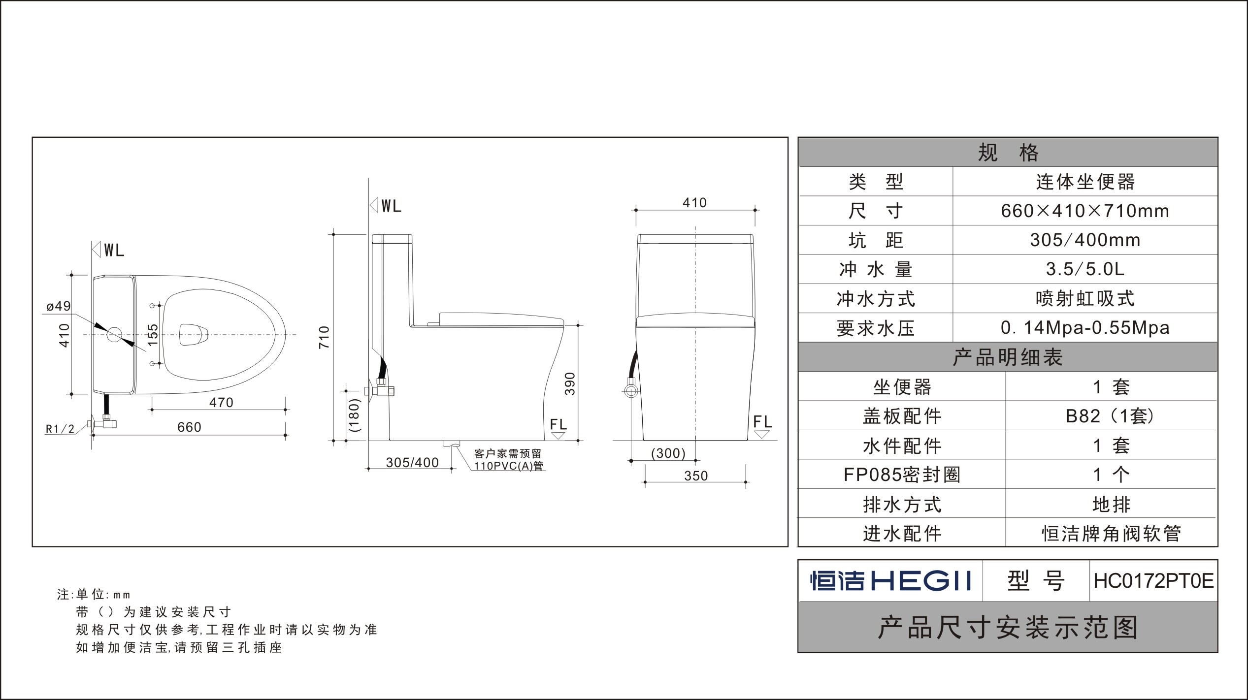 坑距:305/400mm